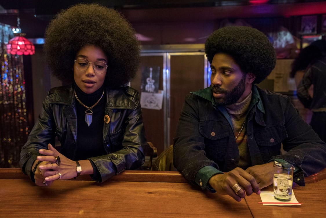 The movie starts with a job interview at the police station in which Ron Stallworth, played by John David Washington, has to convince the officers of his political suitability and ability to remain calm in racist situations, as he will be the first-ever African-American cop in Colorado Springs. Dissatisfied with his work at the file archive at the police station after having been accepted at the Colorado Springs Police Department, Stallworth requests to be admitted to undercover investigations and thus intelligence services. In his first such mission, he gathers information about the Black Panther Party at a meeting of Black activist Kwame Ture, where he gets to know Patrice Dumas (played by Laura Harrier), chairwoman of the Black Student Union. Starting to develop romantic feelings for her, but aware of her attitude toward the police, he deems it necessary to continue to hide his cop identity.